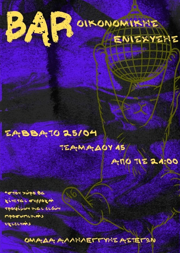 Μπαρ οικονομικής ενίσχυσης της Ομάδας Αλληλεγγύης Αστέγων!