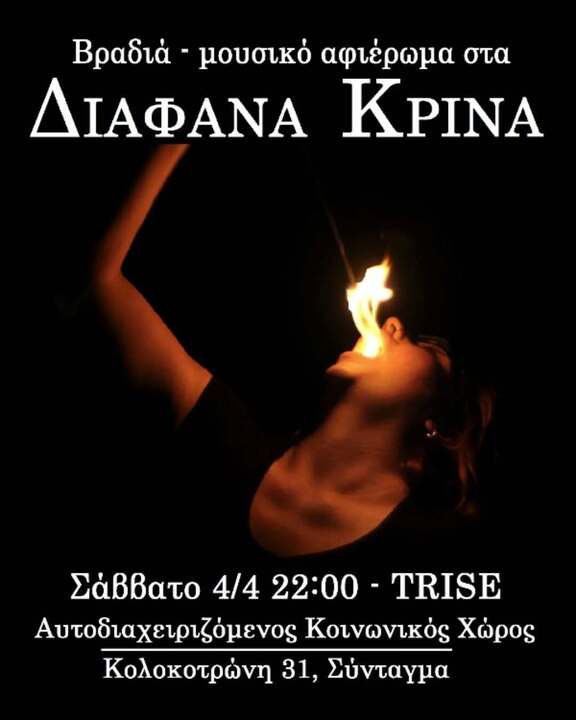 Αυτό το Σάββατο, ξημερώματα Κυριακής των Βαΐων από τις 22:00 και μετά μαζευόμαστε στο Τρισέ για μια βραδιά αφιερωμένη στα Διάφανα Κρίνα!