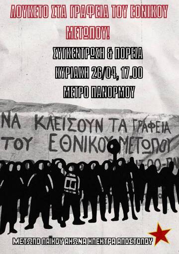 Συγκέντρωση & πορεία, Κυριακή 26/04 στις 17:00, Μετρό Πανόρμου