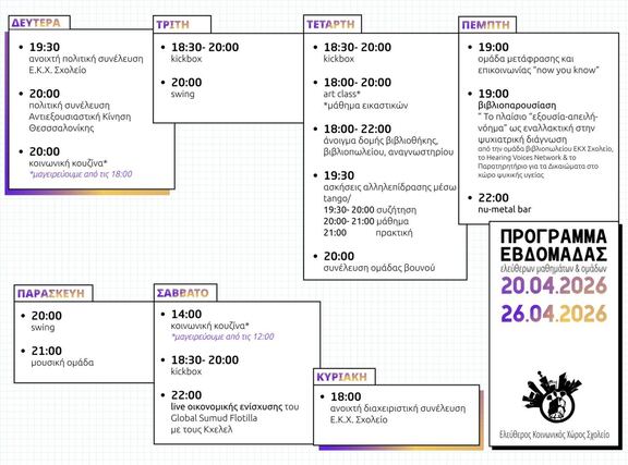 Εβδομαδιαίο πρόγραμμα από 20 έως 26/4