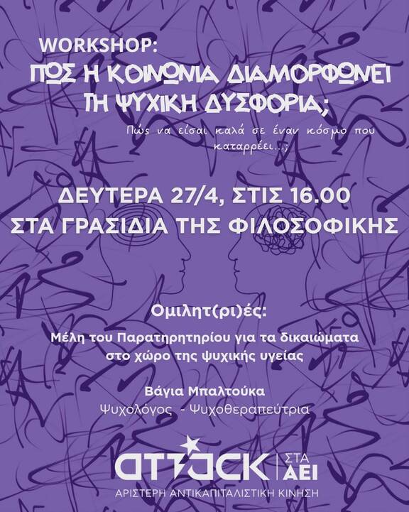 Workshop: Πως η κοινωνία διαμορφώνει την ψυχική δυσφορία;