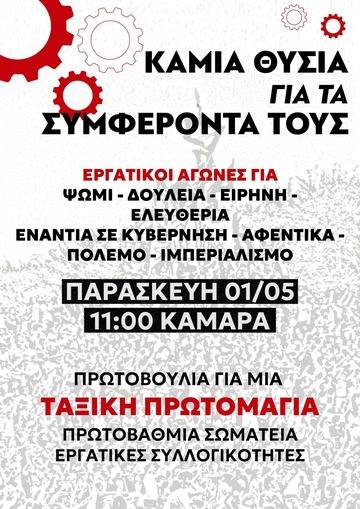 απεργία της Πρωτομαγιάς θα δηλώσουμε ξανά ότι δεν είμαστε αναλώσιμοι και δεν θα γίνουμε "κρέας στα κανόνια",