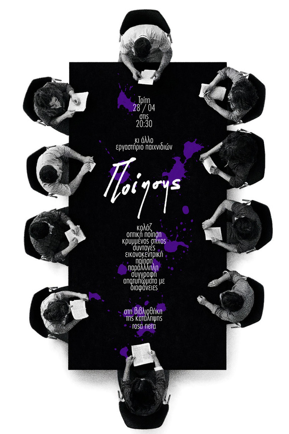 Την Τρίτη 28 Απριλίου στις 8.30μμ, στην βιβλιοθήκη της κατάληψης Rosa Nera, οι βραδιές ποίησης σας καλούμε σε άλλο ένα εργαστήριο παιχνιδιών, συλλογικής γραφής και χειροτεχνιών γύρω από την ποίηση.