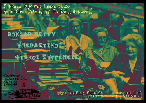 Σας καλούμε όλους και όλες λοιπόν, στη συναυλία που συνδιοργανώνουμε, το Σάββατο 12 Μαϊου στις 8.30 μμ στη Λαμπηδόνα!