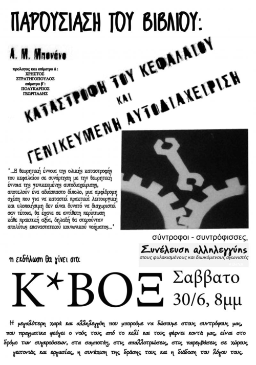 Παρουσίαση του Βιβλίου 'Καταστροφή του κεφαλαίου και γενικευμένη αυτοδιαχείρηση' του Α. Μπονανο, μετάφραση, προλογος επίμετρο ά: Χρήστος Στρατηγόπουλος,