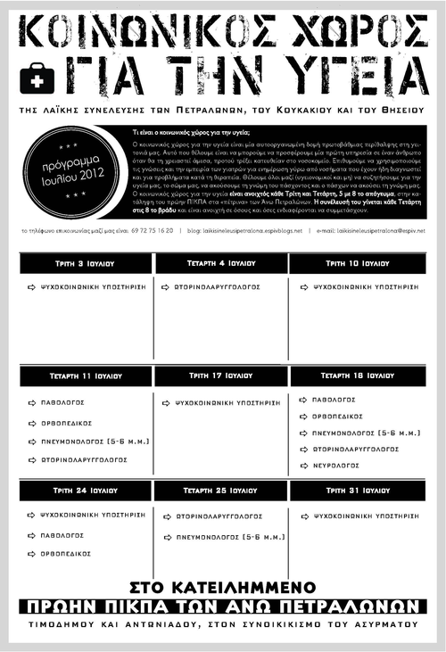 Το πρόγραμμα του κοινωνικού χώρου για την υγεία για τον μήνα Ιούλιο.