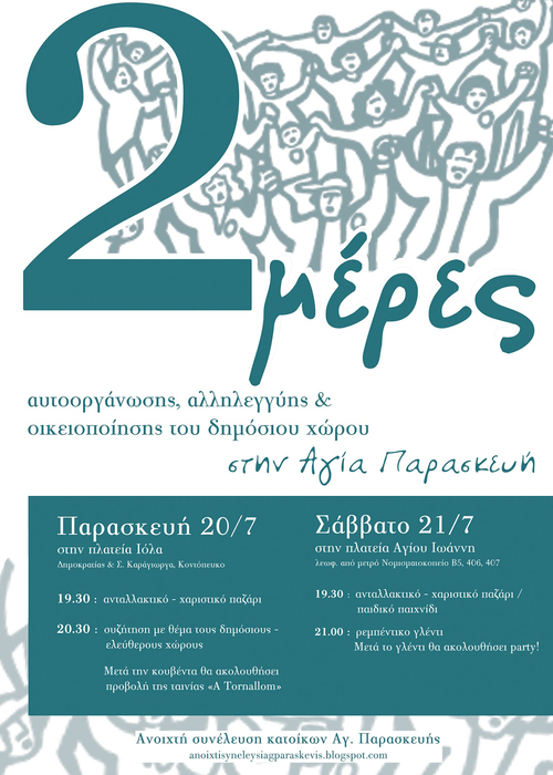 2 μέρες αυτοοργάνωσης, αλληλεγγύης & οικειοποιήσης του δημόσιου χώρου στην Αγία Παρασκευή