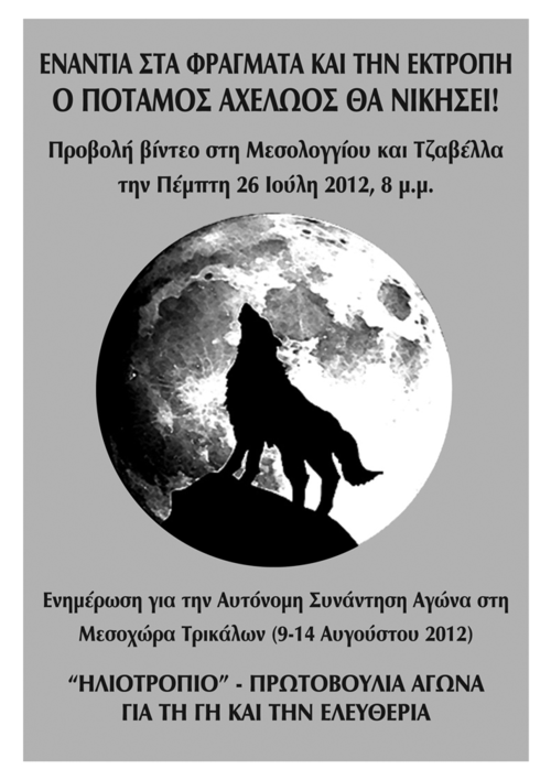 Η σημερινή προβολή για τον Αχελώο και η ενημέρωση για την κινητοποίηση στη Μεσοχώρα, αναβάλονται για την επόμενη Τρίτη, 31 Ιούλη στις 8 μ.μ.