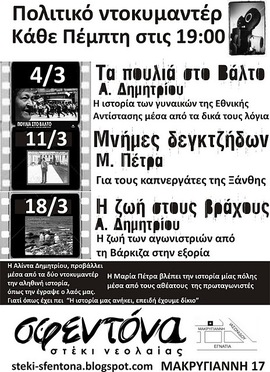 Ο Μάρτιος είναι αφιερομένος στο πολιτικό ντοκυμαντέρ αλλά και στο γυναικείο ζήτημα.