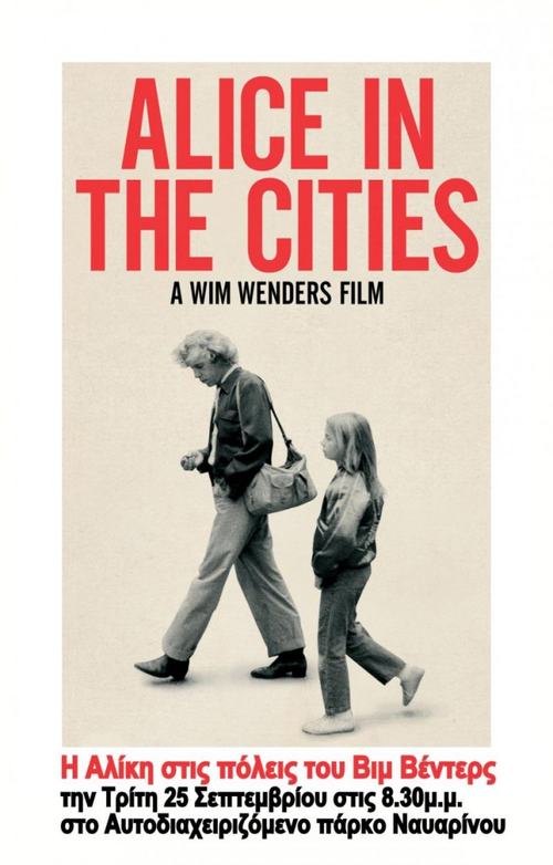 Μια από τις πιο εμβληματικές ταινίες του "Νέου Γερμανικού Κινηματογράφου",η "Αλίκη στις πόλεις" (1973) του Βιμ Βέντερς αφηγείται την ιστορία της συνάντησης του Φίλιπ Γουίντερ (Ρούντιγκερ Φόγκλερ),δημοσιογράφου που βασανίζεται από συγγραφικό μπλοκάρισμα, και της οκτάχρονης Άλις (Γιέλα Ρότλεντερ).Όταν η μητέρα της Άλις Λίζα (Λίζα Κρόιτσερ) την εγκαταλείπει,ο Φίλιπ γίνεται ο φύλακας-άγγελός της. Επιστρέφοντας στην Ευρώπη,μια φιλία αρχίζει να αναπτύσσεται ανάμεσα στους δύο,καθώς προσπαθούν να εντοπίσουν τη γιαγιά της μικρής Άλις.