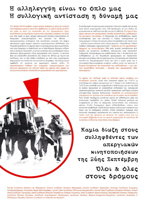 Αντιπληροφόρηση για την καταστολή της γενικής απεργίας στις 26/09