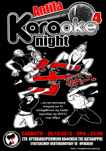 KARAOKE - Καφενείο για την οικονομική ενίσχυση των 15 συλληφθέντων της αντιφασιστικής περιπολίας -μοτοπορείας της 30/9/12 στην Αθήνα.