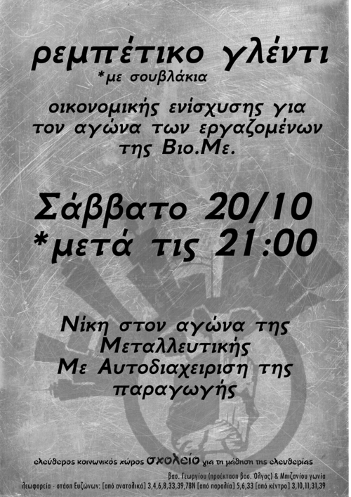 Βραδιά οικονομικής ενίσχυσης του αγώνα στη Βιο.Μετ.