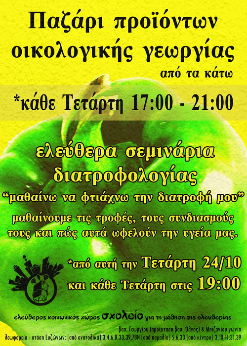 "Σχολείο για τη Μάθηση της Ελευθερίας" Ελεύθερος Κοινωνικός Χώρος (πρώην 12ο Δημοτικό Σχολείο Θεσσαλονίκης) Βασ. Γεωργίου με Μπιζανίου λεωφορεία 3,5,6,7,8,10,11,31,33,39,58 στάση ΕΥΖΩΝΩΝ (περιοχή Φάληρο)