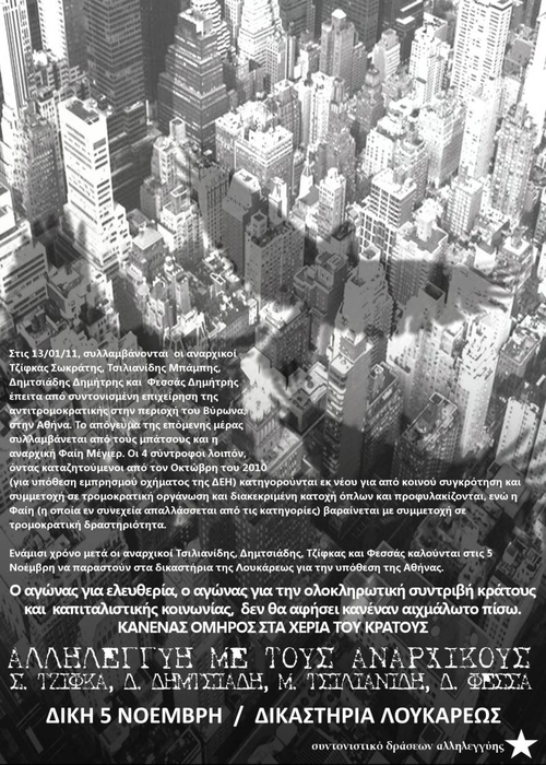 ΑΛΛΗΛΕΓΓΥΗ ΜΕ ΤΟΥΣ ΑΝΑΡΧΙΚΟΥΣ ΣΥΝΤΡΟΦΟΥΣ ΤΣΙΛΙΑΝΙΔΗ ΜΠΑΜΠΗ, ΔΗΜΤΣΙΑΔΗ ΔΗΜΗΤΡΗ, ΤΖΙΦΚΑ ΣΩΚΡΑΤΗ