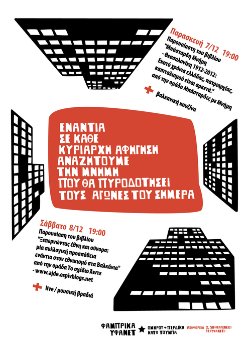 Είμαστε μία συλλογικοποίηση συντρόφων από τα Σκόπια και την Θεσσαλονίκη με όνομα «Το σχέδιο Άιντε». Ξεκινήσαμε πριν περίπου 1μιση χρόνο μία διαδικασία συζητήσεων με σκοπό να αντιπαρατεθούμε από κοινού με τις έννοιες του έθνους και του εθνικισμού και να συμβάλουμε σε μία γόνιμη ανταλλαγή κινηματικών εμπειριών. Το αποτέλεσμα της δουλειάς μας είναι η έκδοση ενός δίγλωσσου βιβλίου (στα ελληνικά και μακεδονικά) με τίτλο «Ξεπερνώντας έθνη και σύνορα: μία συλλογική προσπάθεια ενάντια στον εθνικισμό στα Βαλκάνια». Το βιβλίο θα παρουσιαστεί τo Σάββατο 8 Δεκέμβρη στην κατάληψη Φάμπρικα Yφανέτ στην Θεσσαλονίκη στα πλαίσια διημέρου το οποίο την προηγούμενη μέρα θα περιλαμβάνει εκδήλωση της συλλογικότητα «Μπάσταρδες με μνήμη».