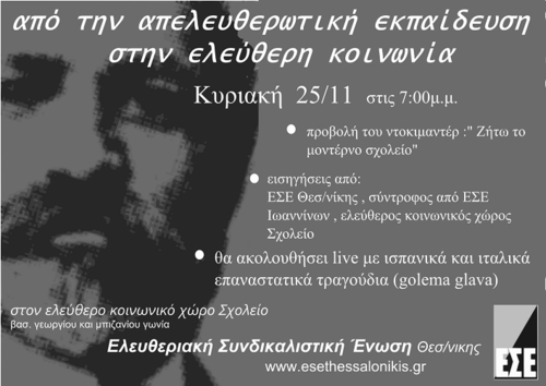 Εκδήλωση: Από την απελευθερωτική εκπαίδευση στην ελεύθερη κοινωνία