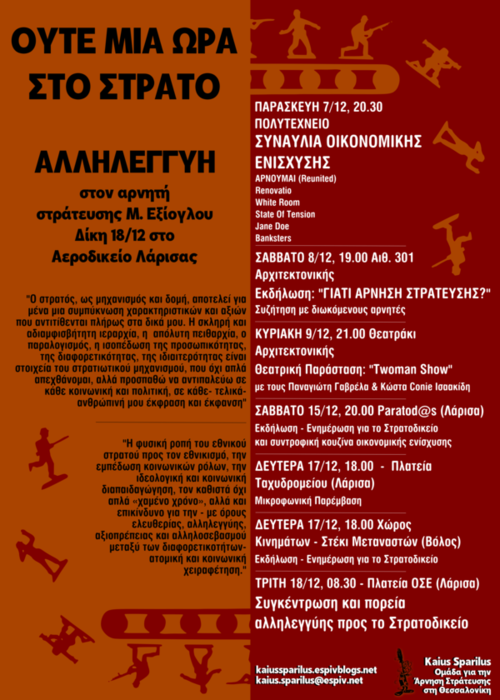 - 18/12 08:30 :: Πορεία αλληλεγγύης στον αρνητή στάτευσης Μ.Εξιόγλου