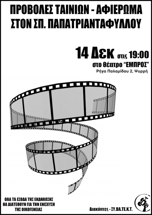 Αυτή την Παρασκευή 15/12 θα γίνει προβολή με ταινίες στην οποίος έχει συμμετάσχει με σκοπό την συγκέντρωση χρημάτων για την οικογένεια του.