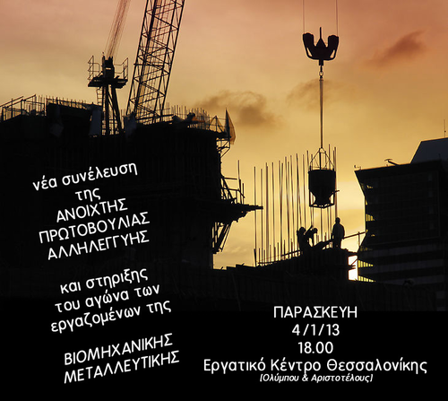 νέα συνέλευση της ΑΝΟΙΧΤΗΣ ΠΡΩΤΟΒΟΥΛΙΑΣ ΑΛΛΗΛΕΓΓΥΗΣ και στηριξης του αγώνα των εργαζομένων της ΒΙΟΜΗΧΑΝΙΚΗΣ ΜΕΤΑΛΛΕΥΤΙΚΗΣ