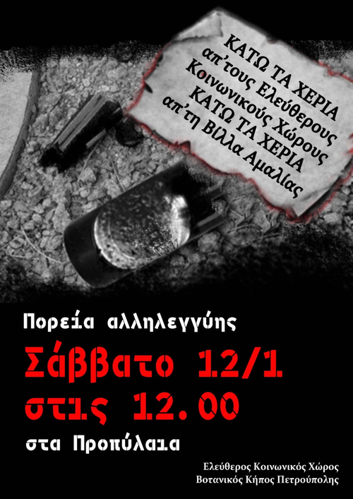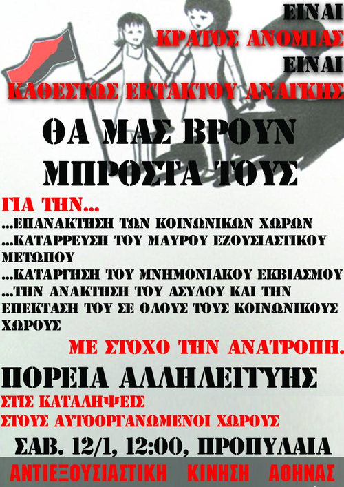 Πορεία αλληλεγγύης, Σάββατο 12/1 στις 12 στα Προπύλαια