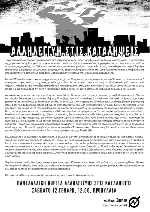 Όλοι στην πορεία αλληλεγγύης - Σάββατο 12/1, 12.00, Προπύλαια