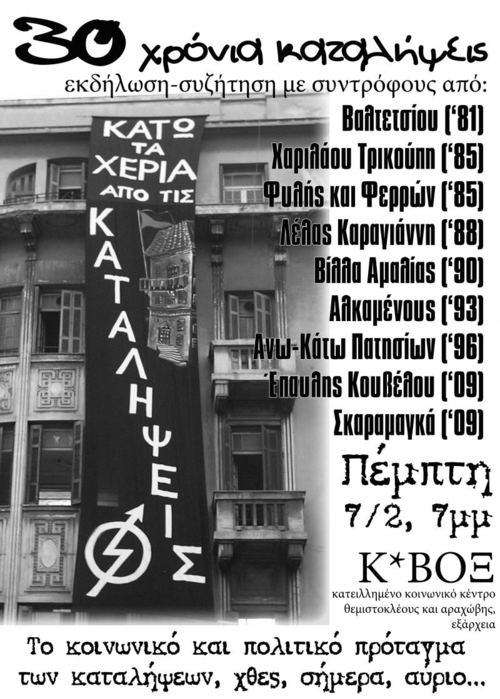 Εκδήλωση-συζήτηση: 30 χρόνια καταλήψεις