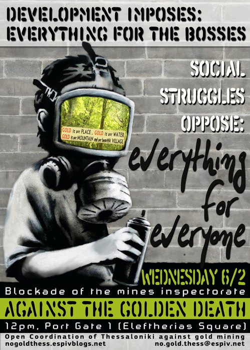 Δράση ενάντια στα μεταλλεία χρυσού στις 6/2 και σχετική συνέλευση: Δευτέρα, 4/2 στις 7μμ, στην κατάληψη Φάμπρικα Υφανέτ