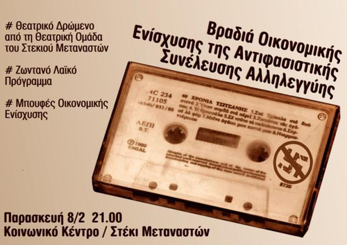 Βραδιά οικονομικής ενίσχυσης αντιφασιστικής συνέλευσης αλληλεγγύης
