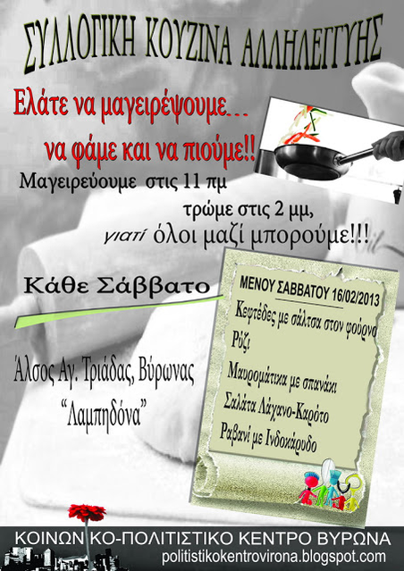 τι; : κουζίνα θεματική : αλληλεγγύη από : Λαμπηδόνα - Πολιτιστικό-κοινωνικό κέντρο Βύρωνα