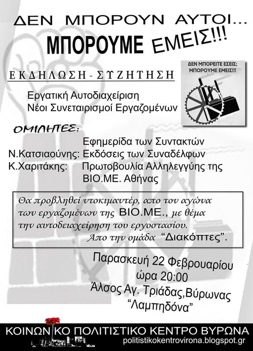 Εκδήλωση - Συζητηση: Εργατικη Αυτοδιαχείριση-Νεοι Συνεταιρισμοί εργασίας