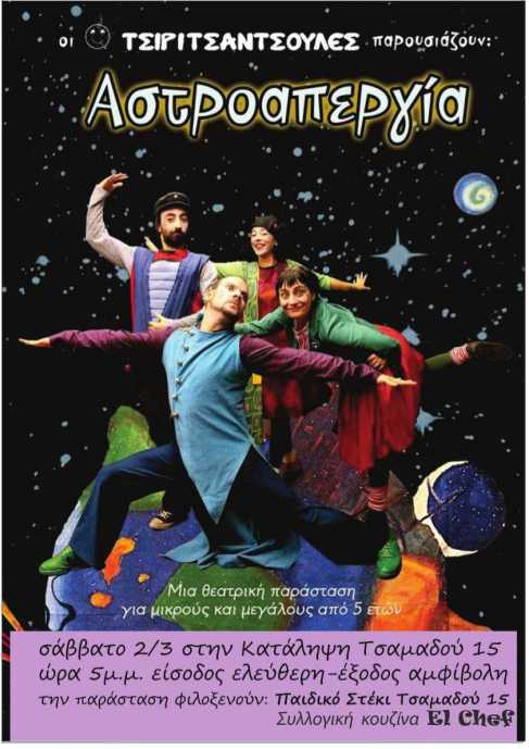 Η παράσταση Αστροαπεργία από την ομάδα Τσιριτσάντσουλες Σάββατο 2/3/2013, στις 5:00,