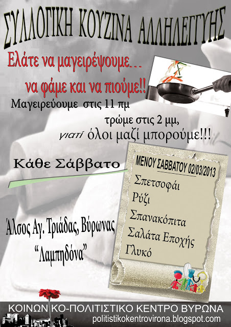τι; : κουζίνα θεματική : αλληλεγγύη από : Λαμπηδόνα - Πολιτιστικό-κοινωνικό κέντρο Βύρωνα