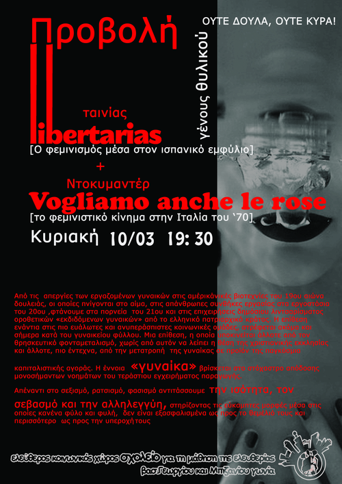 Προβολή των ταινιών Libertarias & vogliamo anche le rose