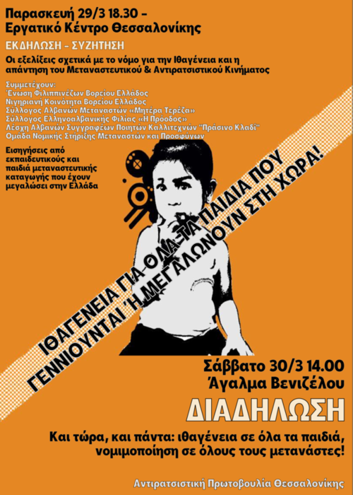 ιθαγένεια σε όλα τα παιδιά, νομιμοποίηση σε όλους τους μετανάστες!