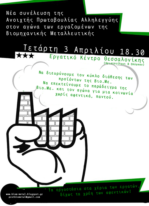 Να επεκτείνουμε το παράδειγμα της Βιο.Με. και τον αγώνα για μια κοινωνία χωρίς αφεντικά, σε όλη τη κοινωνία.