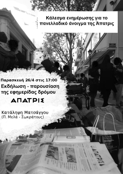 ΠΑΝΕΛΑΔΙΚΟ ΚΑΛΕΣΜΑ ΓΙΑ ΤΟ ΑΝΟΙΓΜΑ ΤΗΣ ΕΦΗΜΕΡΙΔΑΣ ΑΠΑΤΡΙΣ