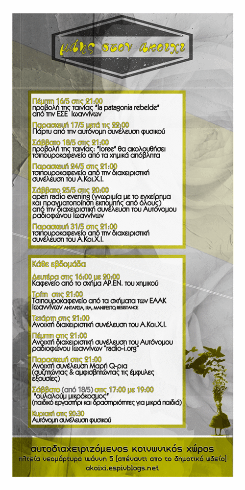 - 25/5 20:00 :: Open radio evening: γνωριμία με το εγχείρημα & συλλογική εκπομπή