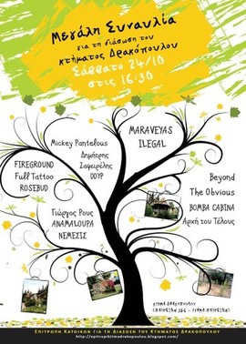 για τη διάσωση του κτήματος Δρακόπουλου. Η συναυλία θα γίνει στο χώρο του πάρκου και θα έχει ελεύθερη είσοδο.