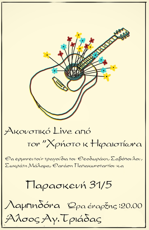Την Παρασκευή 31 Μαΐου 2013 κ ώρα 20.00 μμ, θα παίξουν στο Κοινωνικό Κέντρο Βύρωνα-Λαμπηδόνα, οι "Χρήστος κ Ηφαιστίων".