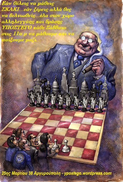 Κάθε Σάββατο πρωί στις 11π.μ. παίζουμε και μαθαίνουμε ΣΚΑΚΙ στον χωρο αλληλεγγύης και δράσης ΥΠΟΣΤΕΓΟ