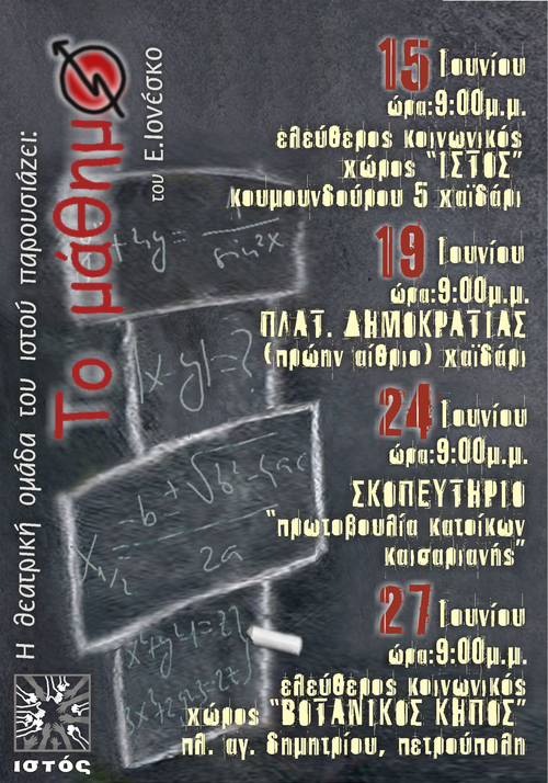 Η θεατρική ομάδα του Ιστού παρουσιάζει «Το μάθημα» του Ε. Ιονέσκο