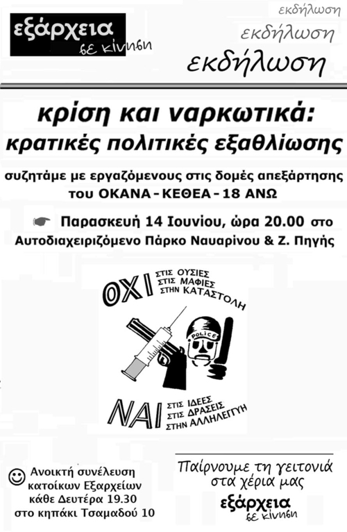 Εκδήλωση: Κρίση & ναρκωτικά: κρατικές πολιτικές εξαθλίωσης