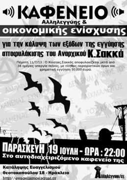 Kαφενείο Αλληλεγγύης & οικονομικής ενίσχυσης για την κάλυψη των εξόδων της εγγύησης αποφυλάκισης του Αναρχικού Κ.Σακκά