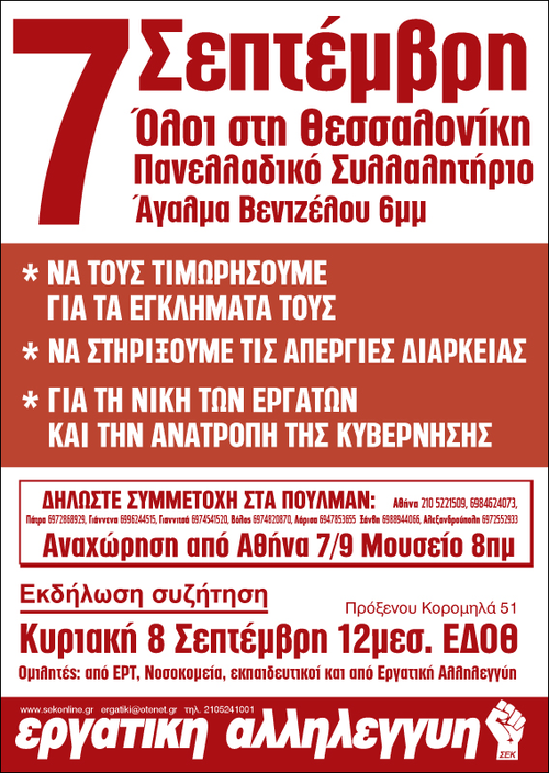 ΣΑΒΒΑΤΟ 7/9 ΟΛΟΙ ΣΤΗ ΔΙΑΔΗΛΩΣΗ ΣΤΗ ΔΕΘ