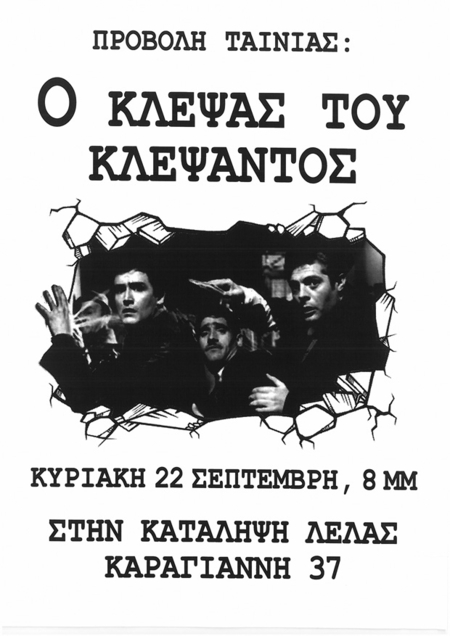 Προβολή ταινίας: Ο ΚΛΕΨΑΣ ΤΟΥ ΚΛΕΨΑΝΤΟΣ Κυριακή 22 Σεπτέμβρη, 8 μ.μ. στην κατάληψη Λέλας Καραγιάννη 37