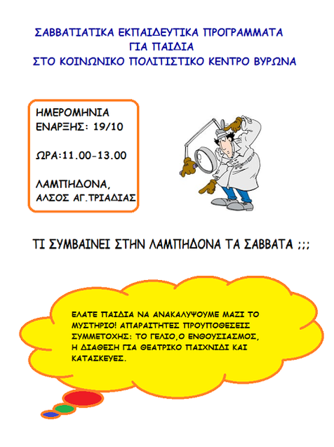 Απο αυτό το Σάββατο 19 Οκτώβρη και κάθε Σαββατο απο τις 11:00 μεχρι την 13:00 θα πραγματοποιείται στην Λαμπηδόνα δημιουργική απασχόληση παιδίων.