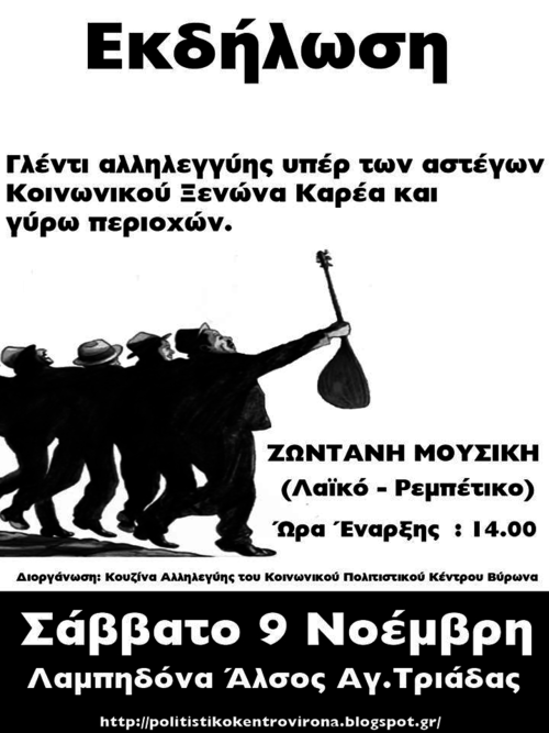 εκδήλωση αλληλεγγύης στους αστέγους του Κοινωνικού Ξενώνα Καρέα, με φαγητό και μουσική.