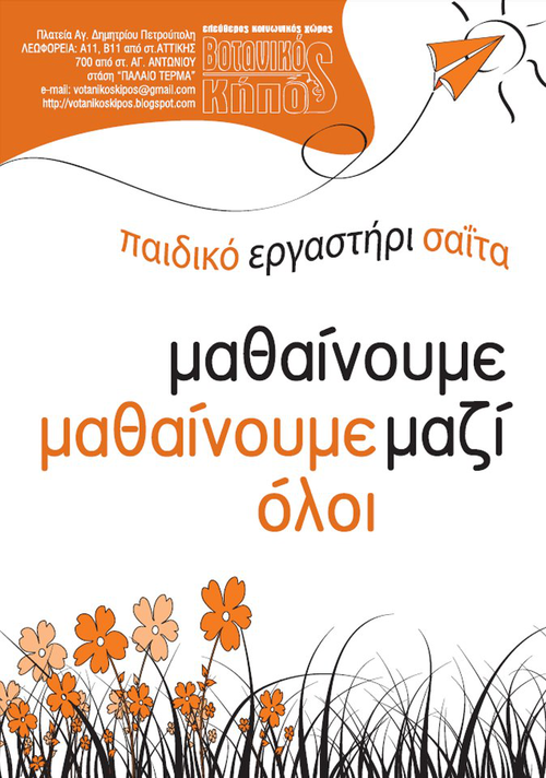 Το παιδικό εργαστήρι του Βοτανικού Κήπου από φέτος παύει τη λειτουργία του ως έχει και εξελίσσεται. Το όνομά του πια γίνεται Παιδικό Εργαστήρι Σαΐτα.