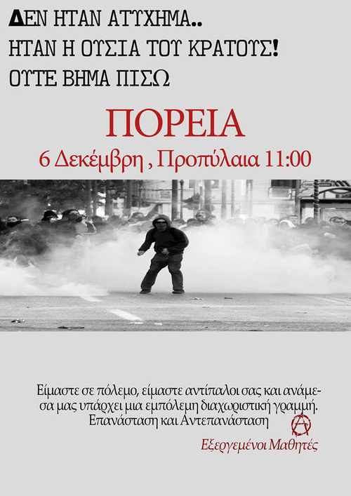 Συγκέντρωση-πορεία στη μνήμη του μαθητή Αλέξανδρου Γρηγορόπουλου , που τόλμησε να σηκώσει τη φωνή του ενάντια στη καταστολή και το πλήρωσε με τη ζωή του.
